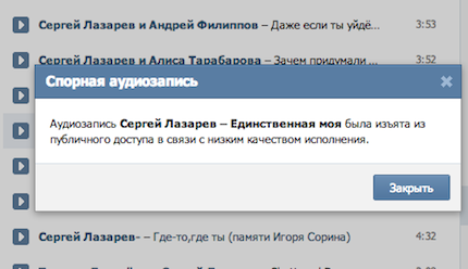 Удалил треки Сергея Лазарева из VK. Культурная ценность аудиозаписей ВКонтакте резко выросла.