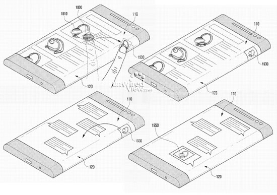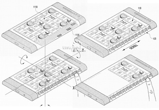 Некоторое время назад Samsung уже показала прототип устройства с изгибом вокруг правого края телефона, однако, дальше прототипа дело пока не продвинулось. Тем не менее, в настоящее время обнаружилась патентная заявка корейской компании, в которой показаны методы управления устройством, имеющим согнутый дисплей.