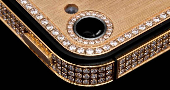Наверняка какому-нибудь шейху приглянется «яблочный» смартфон, корпус которого выполнен из золота высшей пробы и инкрустирован семью сотнями чистейших бриллиантов категории VVS, общим весом 7 карат. Примечательно, что самый большой камень, весом в 2 карата, помещен на кнопку Home — возможно, именно по этому разработчики использовали iPhone 5, а не более современный iPhone 5s (бриллиант препятствовал бы работе дактилоскопического сенсора Touch ID).