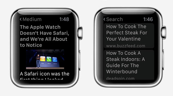 Программист Эларик Коул разработал первый браузер для веб-серфинга на Apple Watch. Приложение под названием Cufflink Browser использует Siri в качестве интерфейса и осуществляет поиск информации в Сети по голосовому запросу. Результаты выдаются на экран часов без форматирования и включают только текст и мультимедийный контент.