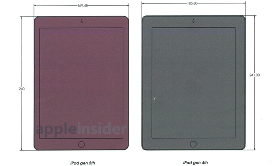 Ресурс AppleInsider эксклюзивно представил схемы будущего поколения iPad 5, официальный анонс которого ожидается 15 октября. На схемах представлено сравнение точных размеров дисплея iPad 5 с теми же параметрами у iPad четвертого поколения.