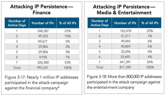 Подобные кампании длятся не один день, и эксперты отмечают, что атака, как правило, не ослабевает со временем. Если в первый день хакеры могут задействовать 248 000 IP-адресов, то на седьмой день кампании их количество уже может доходить до 526 000.