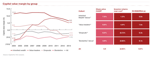 «В старые времена, телекомы могли рассчитывать на высокие темпы роста выручки и EBITDA», — рассказал Пьер-Ален Сюр из PwC. «Сегодня такие сегменты, как фиксированная связь, в абсолютном упадке, и кроме того, ожидается сокращение сегмента мобильной телефонии. Телекомам нужно отвлечь свое внимание от EBITDA и изменить политику в пользу возвращения капитала. Речь идет о сложных внутренних процессах принятия решений — отказе от ожиданий получить EBITDA-мультипликаторы, которые они ждут».