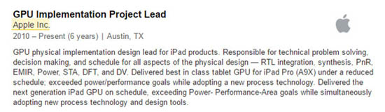На сайте Apple обнаружена вакансия сотрудника Apple, в которой указано, что специалист разрабатывает графический чип для планшета, который последует за iPad Pro на SoC A9X. То есть графикой в составе чипа A10X.