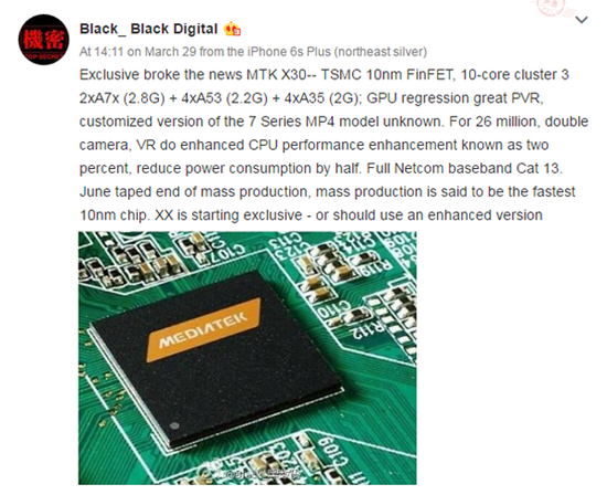 Но MediaTek не собирается на этом останавливаться и в производстве уже находится наследник X20 — чип Helio X30. Разработчики уверены, что он справится с лучшим из решений Qualcomm, процессором Snapdragon 820 на базе фирменной архитектуры Kryo, которому, к тому же, помогает выделенный DSP Hexagon 680. Не такая уж простая задача, но MediaTek смотрит на будущую битву процессоров ARM класса High-End с оптимизмом. Согласно ряду источников, Helio X30 появится на рынке уже в 2017 году и вместо заявленного ранее 14-нанометрового техпроцесса FinFET будет использовать сразу 10-нанометровую технологию TSMC или Samsung. Пока не ясно, кто именно займётся производством этих чипов, но с учётом массивных заказов Apple на производство 10-нм процессоров A10 на мощностях TSMC, это действительно может быть Samsung.