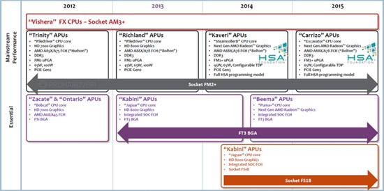 Анонс Carrizo ожидается в 2015-м. В следующем году компания AMD также предложит процессоры Beema — экономичные «системы на чипе» со встроенным криптографическим сопроцессором. Эти изделия придут на смену Kabini.