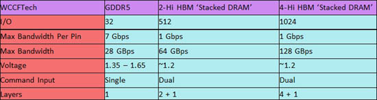 Для HBM предусмотрено два варианта исполнения — 2-Hi и 4-Hi. В первом случае пропускная способность достигает 64 Гбайт/с, во втором — 128 Гбайт/с. Любопытно, что, по данным сетевых источников, чипы Carrizo будут производиться по 28-нанометровой технологии, в то время как память HBM — по 20-нанометровой.