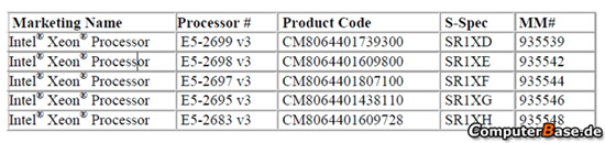 Сообщается, что Intel готовит модели Xeon E5-2699 v3, E5-2698 v3, E5-2697 v3, E5-2695 v3 и E5-2683 v3. Они будут работать на номинальной тактовой частоте от 1,6 до 3,5 ГГц, а максимальное значение рассеиваемой тепловой энергии (TDP) не превысит 160 Вт. Чипы получат поддержку оперативной памяти DDR4.