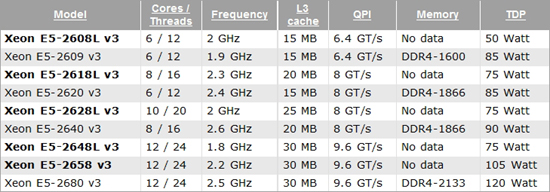 Кроме того, Intel предложит процессоры Xeon E5-2609 v3, E5-2620 v3, E5-2640 v3 и E5-2680 v3, которые будут устанавливаться как в обычные серверы, так и во встраиваемые системы.