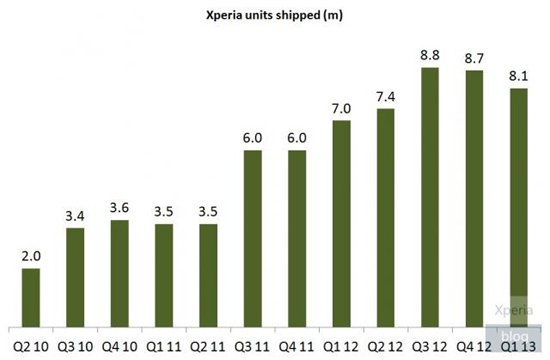 Причина этого кроется в последнем финансовом квартале (1 календарный квартал 2013), когда продажи оказались на 1 млн меньше ожидаемых - 8,1 млн смартфонов вместо 9,1 млн. Компания связывает это с успехом телефона Sony Xperia Z, благодаря которому Sony Mobile уже прогнозирует 27% рост продаж в этом году. По словам финансового директора Масару Като, Xperia Z был так хорошо принят публикой, что другие модели, в итоге, не оправдали ожиданий продаж. Люди оказались более заинтересованными в нашумевшей новинке, предпочтя её смартфонам Xperia T или Xperia V, даже несмотря на рекламную компанию в связи с выходом нового фильма о Джеймсе Бонде.