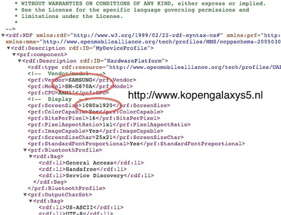 По мнению экспертов ресурса GSMArena, в профиле UAProf, скорее всего, идет речь о Galaxy S5 Active, но не Galaxy S5 mini, так как мини-версия флагмана вряд ли получит экран с подобным разрешением. Кстати, по сведения инсайдеров, Galaxy S5 mini (SM-G800) оснащен 4,5" сенсорным дисплеем Super AMOLED с разрешением 720p.