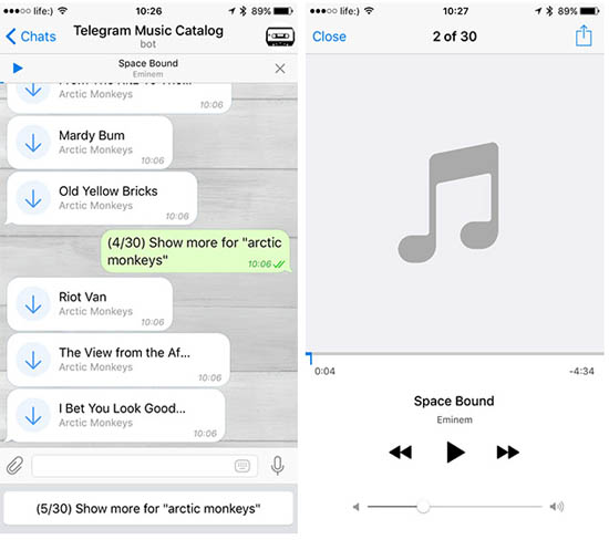 Отдельный привет пользователям iOS. Для того, чтобы залить музыку, придется воспользоваться ноутбуком — мобильная версия блокирует эту функцию. Прослушать треки можно сразу в Telegram — встроенный плеер в наличии.