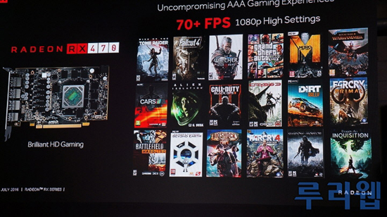 В ходе недавней презентации графических ускорителей Polaris в Азии представители AMD привели данные об уровне производительности готовящихся видеокарт Radeon RX 470 и RX 460. Старшая модель, унаследовавшая дизайн платы от дебютного 14-нм продукта Radeon RX 480 (Polaris 10), проектировалась для игр с разрешением Full HD (1920 × 1080) и вещания потокового видео. В арсенал RX 470 входят 2048 шейдерных блоков, 256-разрядная шина памяти и 4 Гбайт локальной памяти GDDR5.