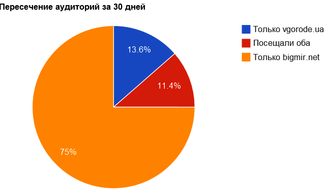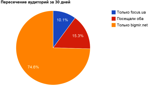 Зайдя на страничку UMH в рейтингах Бигмира, захотелось исследовать аудиторию сайтов с большой посещаемостью на предмет пресечения с самим Бигмиром. Смотрим картинки.