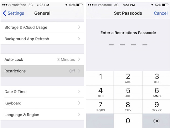Чтобы найти функцию, зайди в Настройки → Основные → Ограничения и установи пароль для доступа, если ты впервые настраиваешь этот пункт. Если же нет — вводи уже установленный.