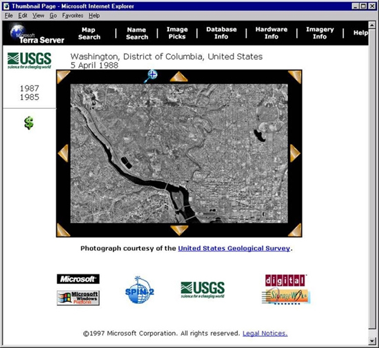 Так сайт Microsoft TerraServer выглядел на момент своего запуска