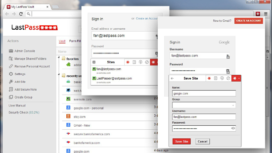 LastPass запоминает пароли пользователя и позволяет заниматься их менеджментом, а также автоматически меняет их, если сервис, для которого они предназначались, был взломан или иным способом скомпрометирован. LastPass поддерживает двухфакторную аутентификацию для хранилища паролей с помощью Google Authenticator, USB-устройства или YubiKey.