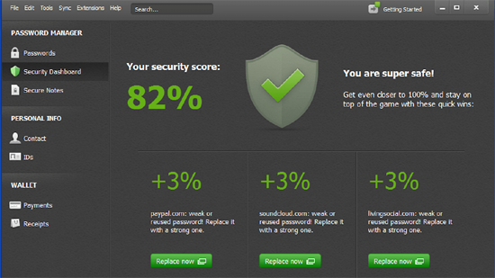 За время существования менеджера, он пережил несколько обновлений, обзавелся поддержкой двухфакторной аутенфикации, возможностью делиться паролями в случае, если пользователь потерял доступ к своим аккаунтам и, главное, функцией, благодаря которой можно сменить несколько паролей к десятку сайтов всего несколькими кликами. Также Dashlane оповещает пользователя, если один из используемых им ресурсов был взломан, и может самостоятельно устанавливать новые уникальные пароли.