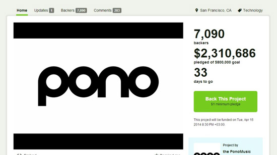 На сайте коллективного финансирования Kickstarter успешно (пожалуй, даже слишком) дебютировал проект PonoMusic, посредством которого планируется распространять музыку очень высокого качества. Буквально за сутки после появления на Kickstarter, проект сумел собрать больше $2.3 миллиона. Это притом, что до конца кампании осталось 33 дня и изначально планировалось собрать только $800 000.