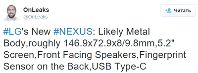 Источник @OnLeaks подтверждает наличие сканеров отпечатков у обоих новых Nexus, расположившихся с тыльной стороны смартфона. Устройство от Huawei точно получит металлический корпус, однако по гаджету LG это лишь предположение. Естественно, оба Nexus оснастят разъемами USB Type‑C, пока активно внедряемыми лишь производителями из Китая.