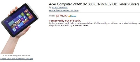 Утечка о Acer Iconia W3 на сайте Amazon