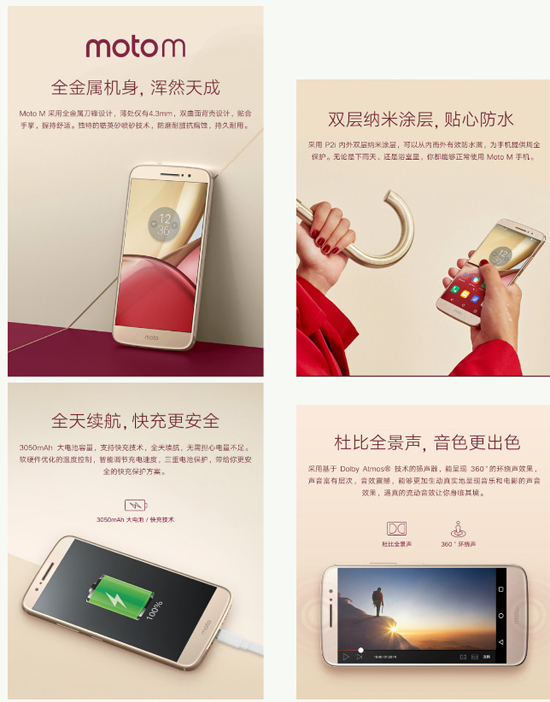 Как можно заметить, речь идет далеко не о флагманском аппарате. Moto M — смартфон средней ценовой категории с достаточно скромными спецификациями, обладающий при этом привлекательным внешним видом, премиальным металлическим корпусом, стереодинамиками и влагозащитой.