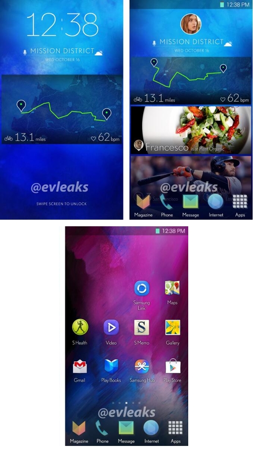 Cкриншоты оболочки Galaxy S5: интерфейс отчасти похож на HTC BlinkFeed, отчасти - на сервис Google Now