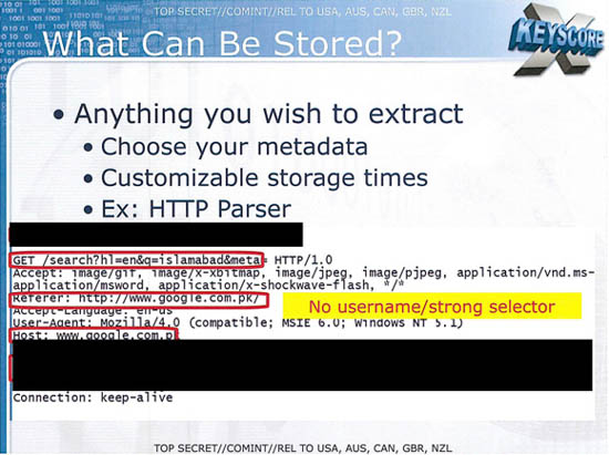 Уникальной особенностью системы XKeyscore является возможность автоматического извлечения метаданных из пользовательских сессий — и индексирования этой информации в базе данных.