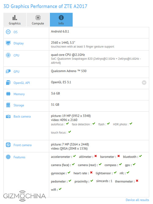 В бенчмарке GFXBench появился новый флагманский смартфон ZTE с индексом A2017.