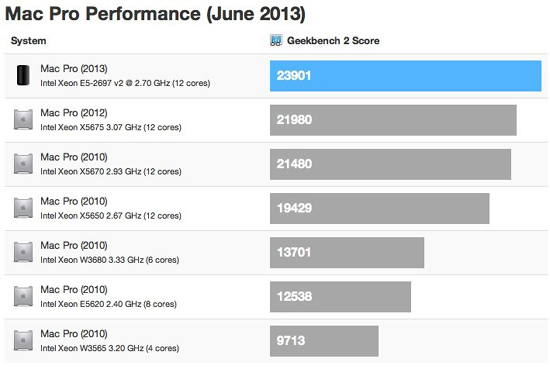 Почти 24 тысячи баллов удалось выжать Geekbench из нового компьютера Apple, что несколько озадачивает потенциальных пользователей обновленного компьютера. Однако стоит помнить, что данный результат был получен при помощи тестирования предрелизной версии компьютера. Данная модель может обладать самыми различными проблемами и с железом, и с еще не адаптированным под него программным обеспечением. Apple все еще не рассказала нам о стоимости и возможных конфигурациях нового компьютера, отсюда вытекает предположение о том, что данные тесты не совсем справедливо проецировать на еще не вышедший компьютер.