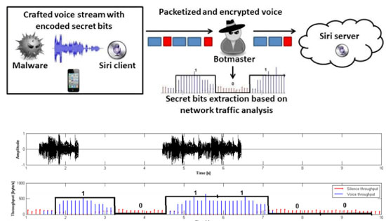 Голосовой ассистент Siri можно использовать таким образом, каким это никак не могла предусмотреть Apple — для скрытой передачи информации от злоумышленника к вредоносной программе, установленной на смартфоне, и обратно. Приложение под названием iStegSiri внедряет постороннюю информацию в звуковые файлы, которые генерирует Siri.