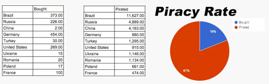 Разработчики отметили, что количество пиратских копий варьируется от региона к региону. И посему рост скачивания пиратских копий напрямую связан с поддержкой языка того или иного региона.