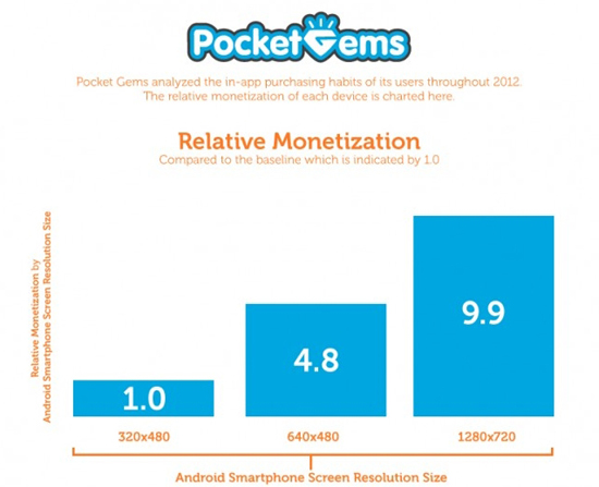 Оказывается, чем качественней дисплей в мобильном устройстве, тем охотней пользователи приобретают внутриигровые предметы. Такие результаты получили аналитики компании Pocket Gems в своем недавнем исследовании.