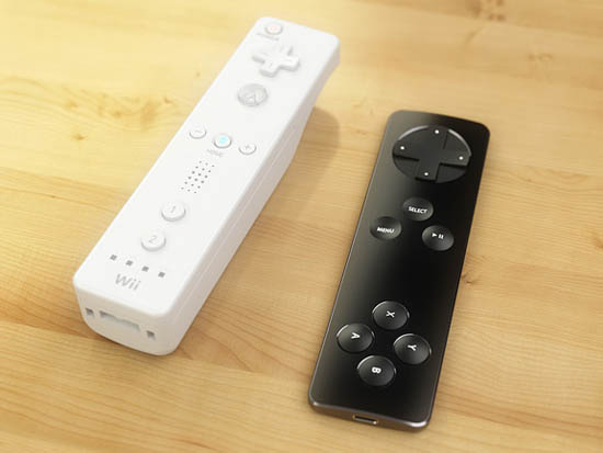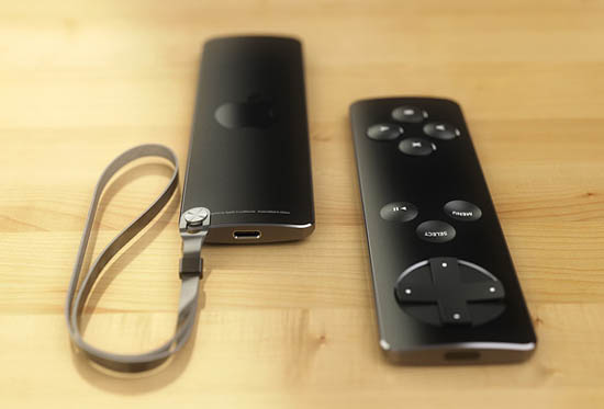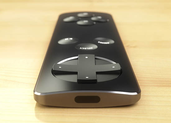 Концепт игрового контроллера Apple TV демонстрирует небольшое устройство черного цвета размером с обычный пульт ДУ. Геймпад ориентирован на казуальные проекты и оснащен ремешком для ношения на запястье. На передней панели можно видеть джойстик, кнопки X, Y, A, B, а также Menu и Select. По своим возможностям девайс напоминает контроллер игровой приставки Wii.