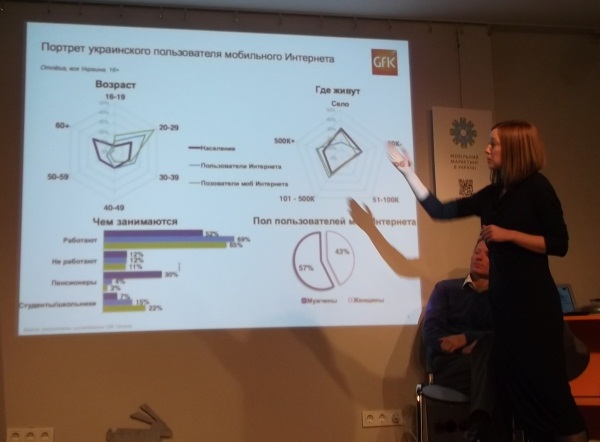 Надежда Тарасенко представила исследование пользователей мобильного интернета. По данным GfK Ukraine около 30% украинцев заходит в интернет с помощью мобильных устройств, при чем возраст самых активных пользователей мобильного интернета – 20-29 лет, а проживают они как в селах, так и в крупных населенных пунктах.