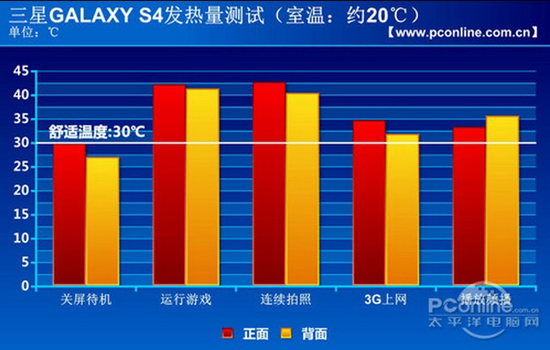 По результатам теста можно увидеть, что максимальная температура Galaxy S 4 не превышает 44 градуса по Цельсию, что можно назвать комфортным показателем и вполне привычным для современных топовых устройств. Но мы сами потом проверим девайс на нагрев и поделимся впечатлениями в подробном обзоре.