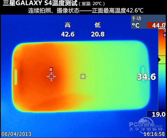 Один из китайских сайтов поделился редкими фотографиями Samsung Galaxy S 4 под наблюдением тепловизора, показывающими весьма продуманное распределение тепла по поверхности устройства и достаточно терпимый нагрев даже в стрессовых ситуациях.
