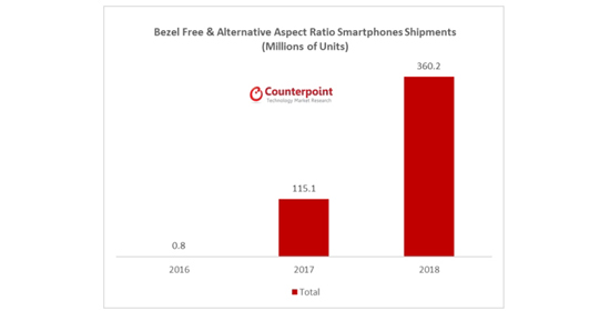 Аналитики Counterpoint Technology Market Research отмечают увеличение продаж смартфонов и фаблетов, оснащённых безрамочным дисплеем и экраном с нестандартным соотношением сторон.
