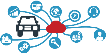 Схема, показывающая один из вариантов автомобиля с сетевыми возможностями. Через "облако" водитель может получить доступ к интернету, навигации, телефонии, онлайн-покупкам и прочим сервисам