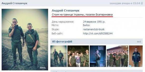 Ще один російський солдат Андрій Степанчук написав у мережі "Вконтакте", що його підрозділ "стоїть на кордоні України, селище Катеринівка".