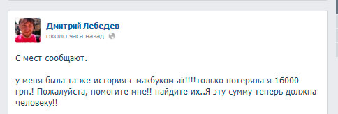Инцидент, о котором идет речь, произошел в субботу, 13 июля. Дмитрий Лебедев продавал Macbook Air на Slando. Как часто бывает, ему долгое время никто не звонил. И вот на прошлой неделе поступило предложение о покупке. Дмитрию назначили встречу, на которую явились два молодых человека презентабельной внешности. Они внимательно изучили товар, поторговались и договорились созвонится, когда примут решение. После чего удалились на якобы еще одни аналогичные смотрины.