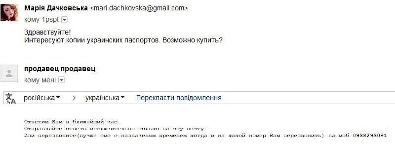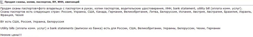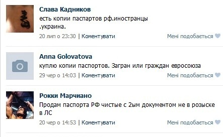 Тим часом в мережі почали з'являтися крикливі оголошення на кшталт: «Пропоную скани паспорів та кодів», «Продам копии паспортов граждан РФ и Украины» та ін.