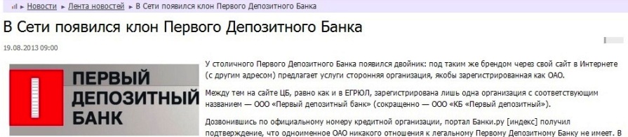 Уанет застерігає користувачів повідомленнями про створення сайтів банків-двійників, які пропонують свої послуги із фантастичним рівнем ставки - як депозитної, так і кредитної.