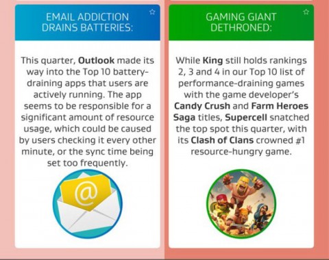 Outlook попал в "Топ-10" часто используемых программ, истощающих батареи телефонов. За приложением было замечено значительное расходование ресурсов мобильных устройств.