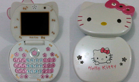 Розовые, украшенные стразами раскладушки под брендом одной из самых популярных кошек мира, представляют собой вольный полет мысли дизайнеров. В гаджет странной формы, представленный на фото, создатели умудрились встроить QWERTY-клавиатуру камеру, Bluetooth и медиаплеер.