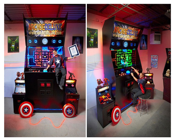 За последние несколько десятилетий было выпущено много самых разнообразных аркадных игровых автоматов. Только по внешнему виду их можно разделить на несколько групп: вертикальные, горизонтальные, сидячие, компактные и т. д. Теперь в этот список можно добавить ещё один тип – огромные. Не так давно житель Чикаго по имени Джейсон Кемберис создал самый большой в мире аркадный игровой автомат. Его высота составляет 4,41 метра. Игровой автомат попал в Книгу рекордов Гиннеса как самый большой экземпляр в своем роде.