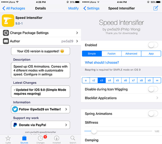 Самый простой способ решить проблему – воспользоваться неофициальными приложениями. Благо теперь у пользователей есть доступ к магазину Cydia в среде iOS 9. Повысить эффективность работы операционной системы, сделать ее максимально быстрой и производительной можно с помощью твика для системного оверклокинга Speed Intensifier. Speed Intensifier наиболее простым способом ускоряет iPhone и iPad за счет управления анимацией. В результате устройства визуально начинают работать быстрее.