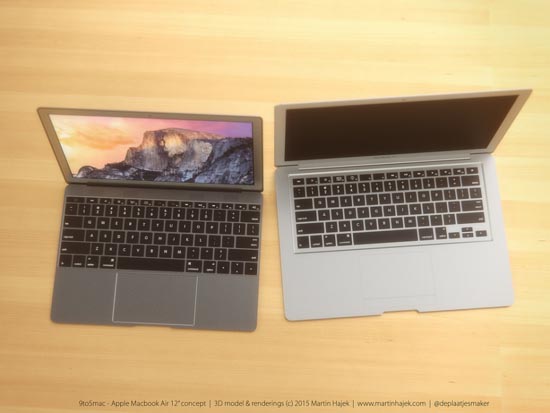 Несмотря на увеличившуюся диагональ дисплея по сравнению с 11-дюймовым MacBook Air, габариты корпуса 12-дюймового MacBook Air окажутся меньше таковых в сравнении с обычным 13-дюймовым MacBook Air.