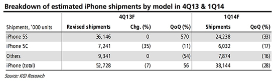 По последним оценкам, продажи iPhone по всему миру могут достигнуть показателя в 45-50 миллионов единиц в первом квартале 2014 года. Однако это оптимистичный прогноз. Сам же Минг-Чи Куо считает более реальной цифру в 38 миллионов. Аналитик проанализировал данные продаж и пришел к выводу, что в последние две недели в Китае спрос на iPhone 5c, поддерживающий местные сотовые сети, резко сократился. Это может заставить Apple не только пересмотреть свой договор с Chine Mobile, но и планируемые объемы производства iPhone на 2014 год.