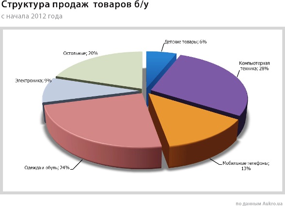 В январе-марте текущего года общая часть подержанных товаров в общем объеме продаж на Aukro.ua составила 20%. По статистике, чаще всего украинцы покупают «из рук в руки» компьютерную технику – 28%, одежду и обувь - 24% и мобильные телефоны – 13%.